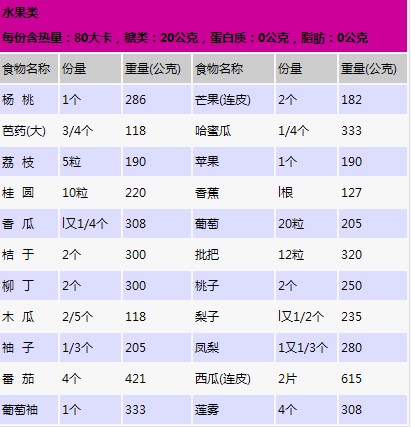 | 五谷类,豆类食物的热量 | 蔬菜类食物的热量 | 水果类食物的热量 | 肉类食物的热量 |